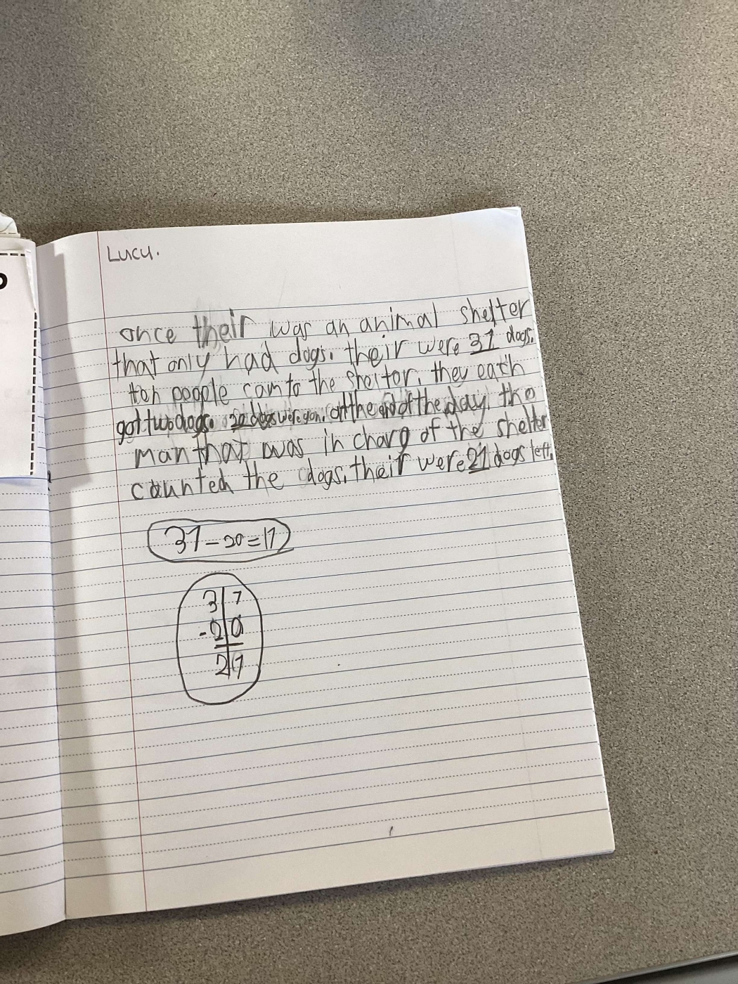 In grade 2 our students can use storytelling to develop, demonstrate, and apply mathematical understanding.