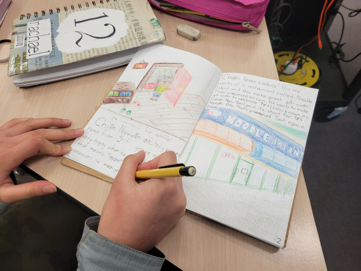 Our upper intermediate learners have been working on creating diverse stories about perseverance that are inspired by their own culture. They recognize that we need more stories with protagonists that look like them and share their experiences. First, they explored children’s storybooks to help them understand and explore different perspectives and make connections to others and the world. By learning the elements of narrative writing and researching their own culture, students were able to demonstrate their learning and express themselves through oral, visual, and written language. Understanding the concept of equity plays a role in how they perceive the world around them.