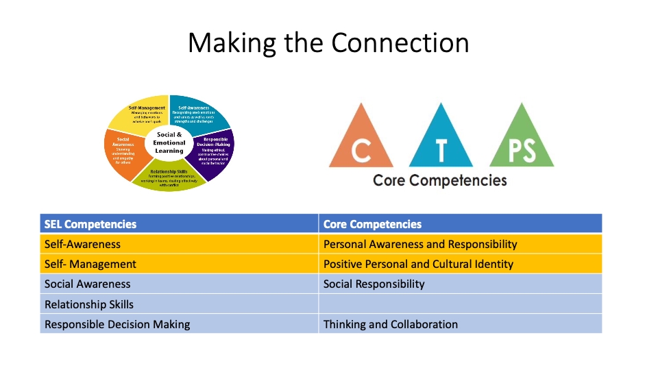 Teachers will continue to use this framework to plan for instruction to ensure our SEL focus is linked to improved outcomes for student achievement in our curricular competencies.
