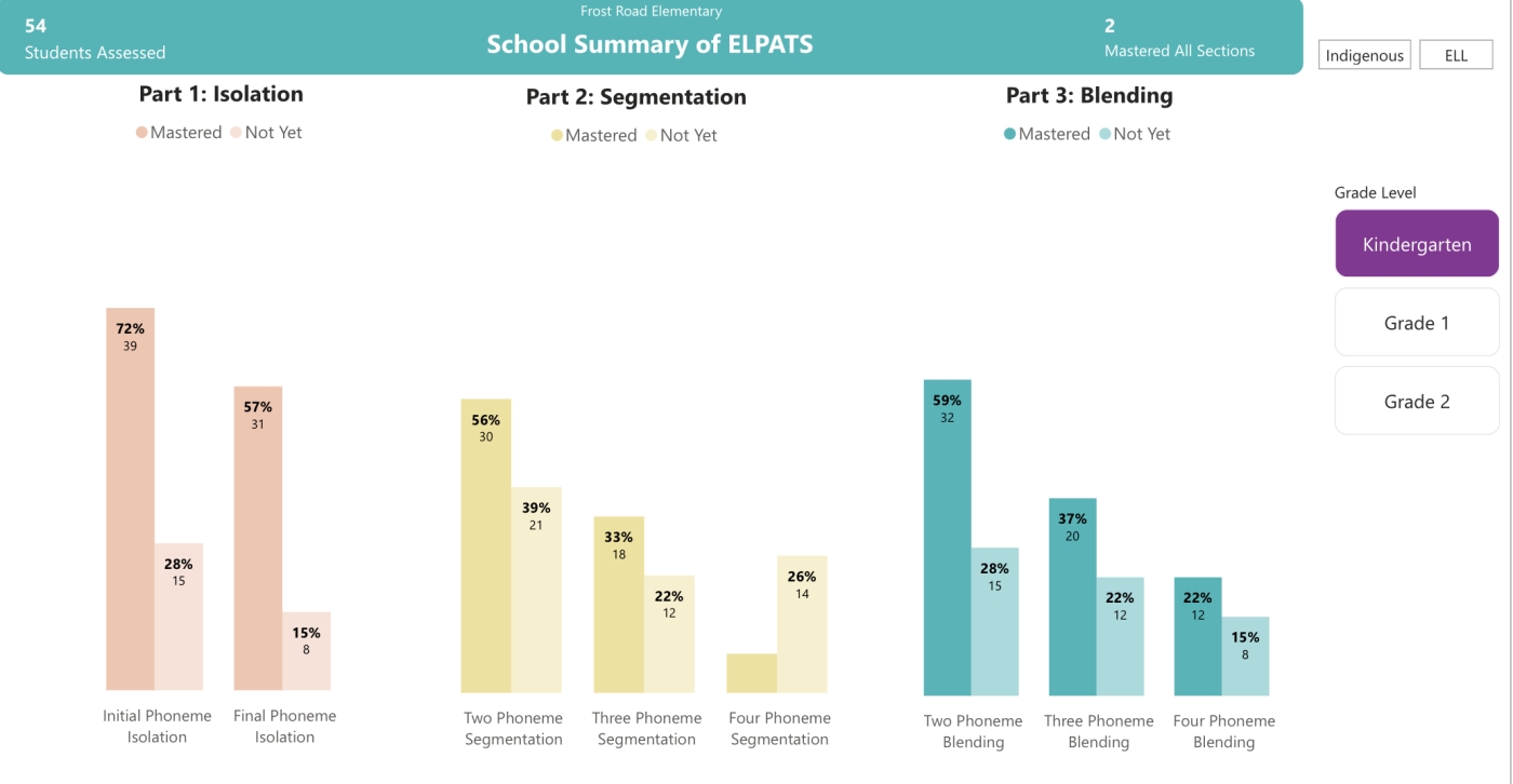 Here are some ELPATS data from our Kindergarten students from February 2025. Our 2024-2025 Kindergartens will be our next cohort and we will follow them over the next few years and track their progress in literacy, continuing to follow our explicit daily teaching of phonics using a consistent step-by-step program. We are looking forward to seeing their growth and development as readers.