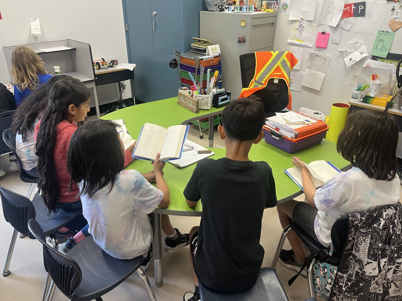 The video below is an example of how one of our teachers conducts small book clubs, focussed on both reading fluency and comprehension. As part of their Daily 5 routine, students meet in their book clubs with the teacher one a week to read a novel together. The teacher acts as the '"coach," supporting students with strategies like pacing and expression. They use targeted prompts, such as "slower" or "pause" to guide students in real time. The small group format allows the teacher to deliver targeted mini-lessons tailored to individual needs.