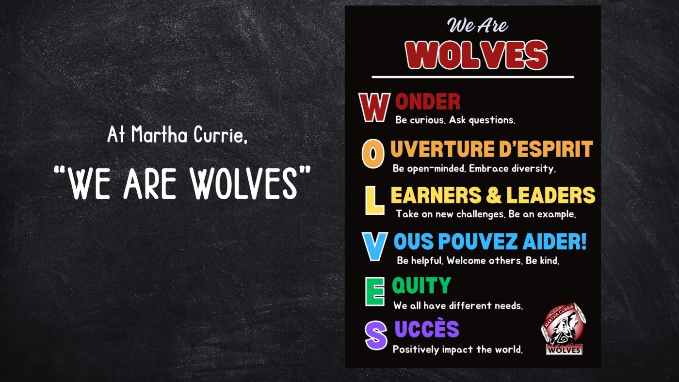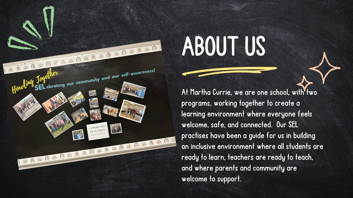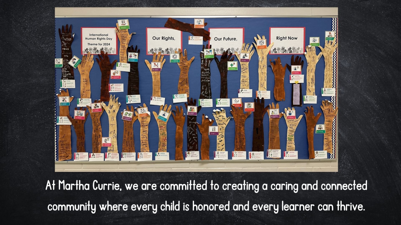 Within a safe and connected community, we can enable the students and adults of Martha Currie to reach their full potential by providing tools and mindful strategies to help identify and self-regulate big feelings and emotions.
