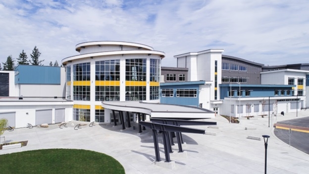 Our 1700 + amazing students love their school, as do our staff and parent community. The features of this state-of-the-art school are numerous, and include over 60 classrooms , a purpose-built black-box theatre, Grand Atrium that resembles a Coast Salish Longhouse , open concept learning commons, two gymnasiums, along with maker spaces with cutting-edge applied design classroom technologies.
