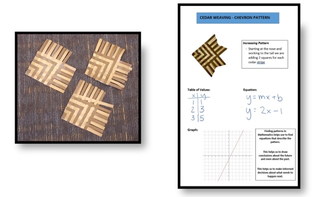 Through our connection with First Peoples, our learners are able to communicate their mathematical knowledge of patterns and relationships to the world around them. In particular, our learners are able to use paper to create cedar weaving art and to illustrate the linear relationships found in this art.