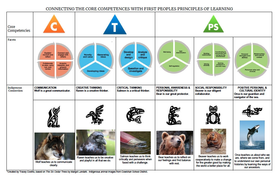 Our strategy is inspired by the teachings from the book "The Six Cedar Trees." This resource uses the Salmon as a symbol of critical thinking and weaves together stories and lessons that embody the First Peoples Principles of Learning. These principles emphasize holistic, reflective, and experiential learning, along with a deep respect for Indigenous knowledge and perspectives.
