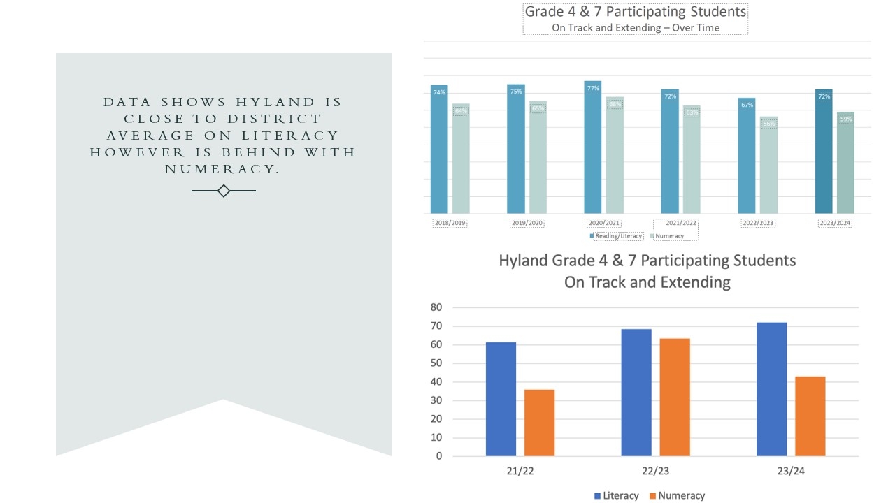 We aim to enhance our students' numeracy abilities. As young mathematicians evolve, we track their growth over time, highlighting milestones and areas for improvement. We value student reflections, self-assessments, and goal-setting, which guide our numeracy initiatives. Hearing directly from our students through various access points, such as individualized numeracy discussions, large-scale surveys, student reflections, math club participation, and standardized testing results, helps showcase student engagement and learning.