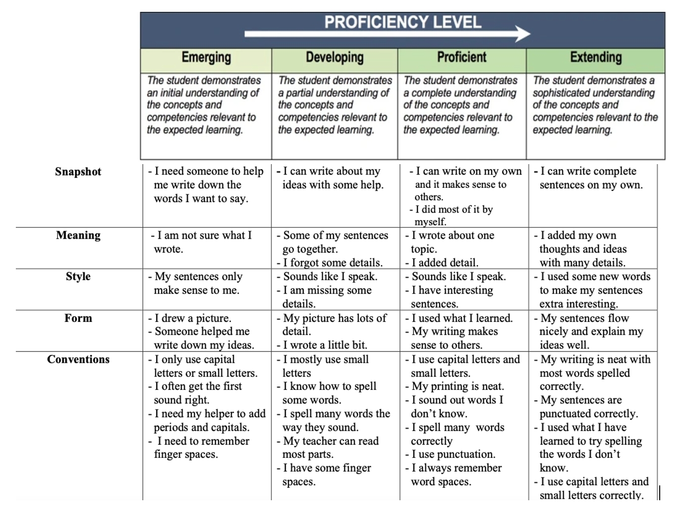 Formal writing assessments are conducted in September, December, and March to inform instructional planning and monitor student development over time. Writing is also evaluated at the end of the school year in June.