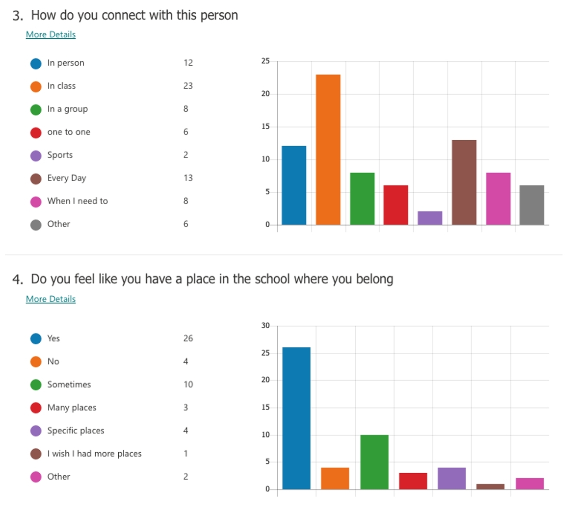 As part of our school focus of building connections, trusting relationships, and safe learning environments in order to engage students in deep, reflective learning; teachers at Lena Shaw produced a survey for grade 4 and 5 students to reflect on their connections within the school. Our intentions are to measure our goals in the present time; to assess our strengths in these areas, as well as deficits. This year's data will serve as a baseline in which we compare future assessments to ensure we are meeting The Personal and Social Core Competency.