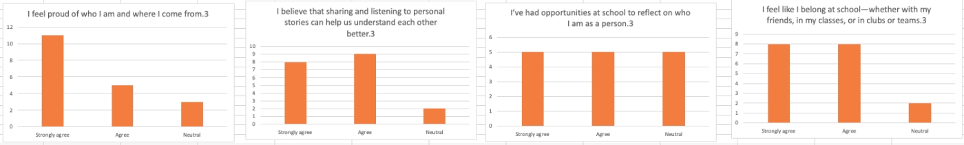 1) Our Grade 8 students responded to an "Identity" survey prior to the instructional unit and after completion of the unit. Students were asked to describe their beliefs about the formation of their identity.