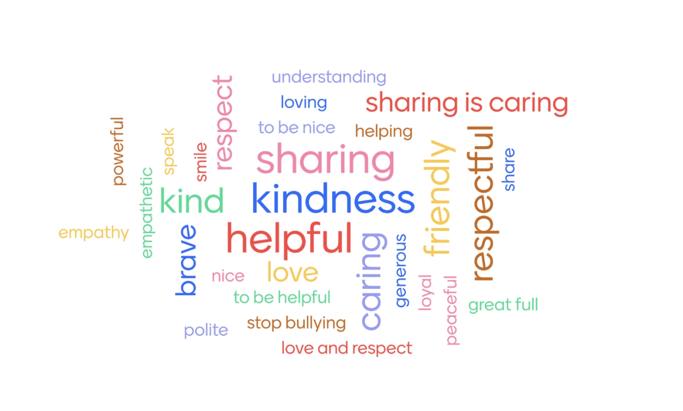 This Word Cloud was co-created during an Anti-Bullying Assembly
