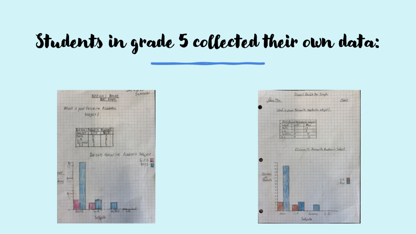 Although students generally enjoy math and express positive attitudes toward the subject, as seen in the student collected data below, there is room for growth in this core academic area. The grade 5 students surveyed fellow students to see what their school favourite subject was. Overwhelmingly, the male identifying students selected math as their favourite subject with language arts and science a distant second and third respectively. The female identifying students also selected math as their favourite subject but language arts was a close second place.