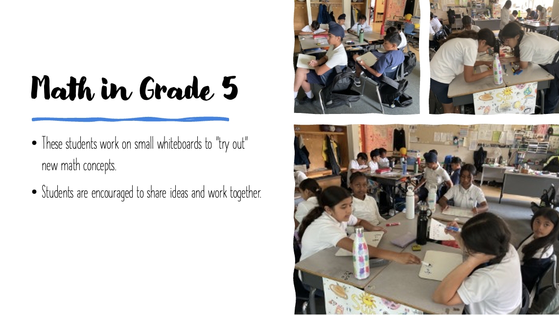 Mr. P explained that, "A different medium (whiteboards) allows students to "draw" their thinking while they are learning new concepts in math. It is less intimidating to make a mistake on a whiteboard that can be easily be erased versus writing it on a paper or in a notebook. It also encourages sharing between students and allows for easy formative assessment ."