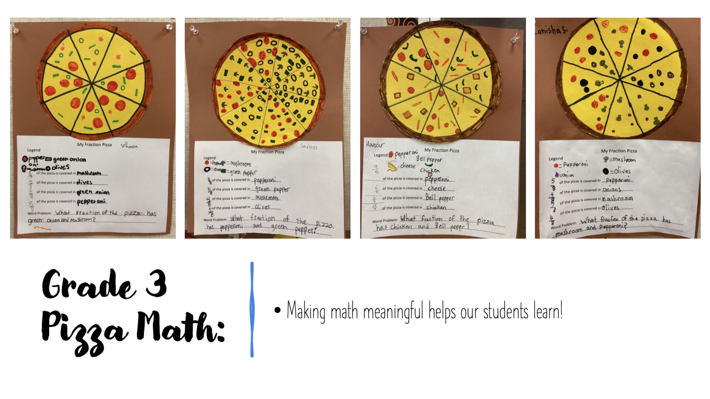 The teacher explained that this activity was designed to connect math concepts to the real world. Everyone loves pizza!