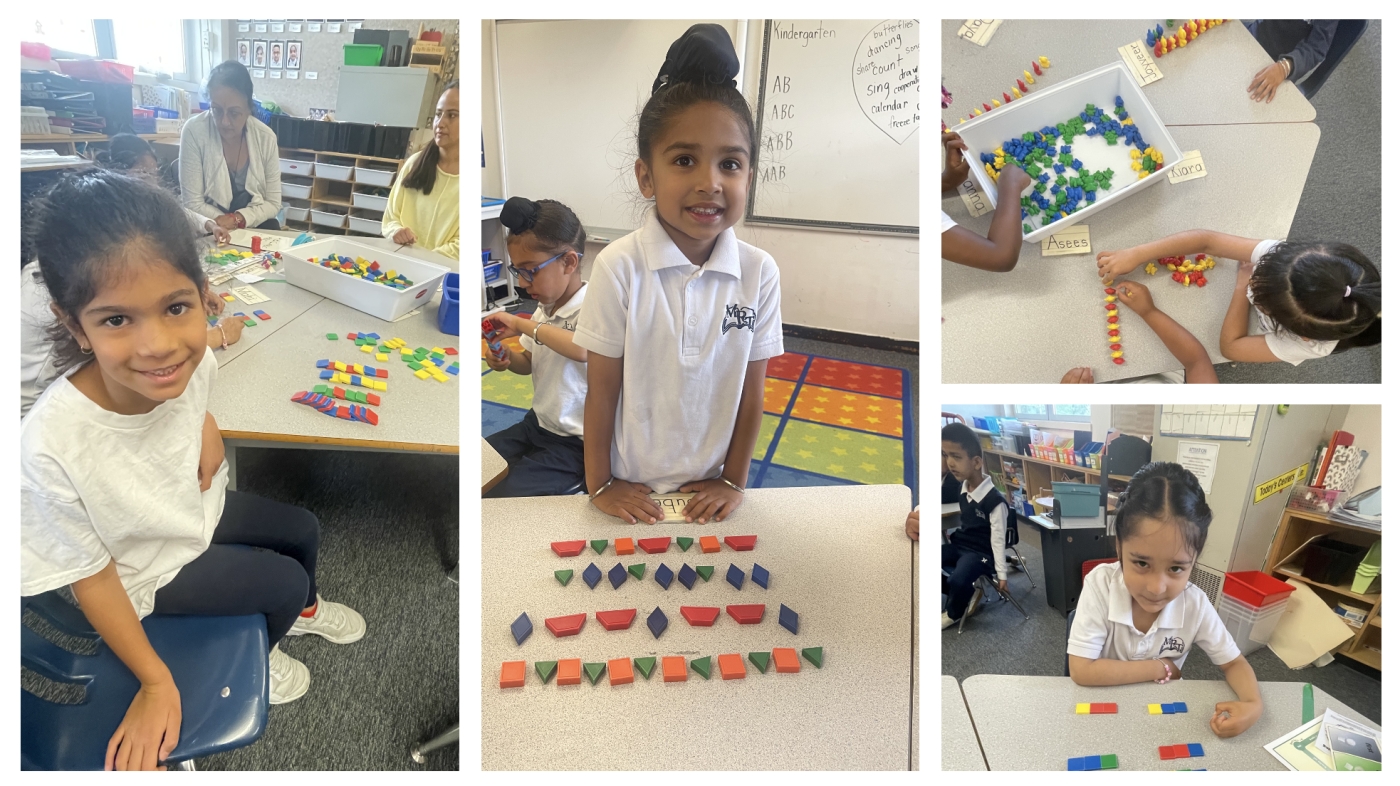 Mrs. K says, "Patterning is a fun way to experience math in a hands-on way. The students don't even realize that they are building the foundation needed to learn algebra ."