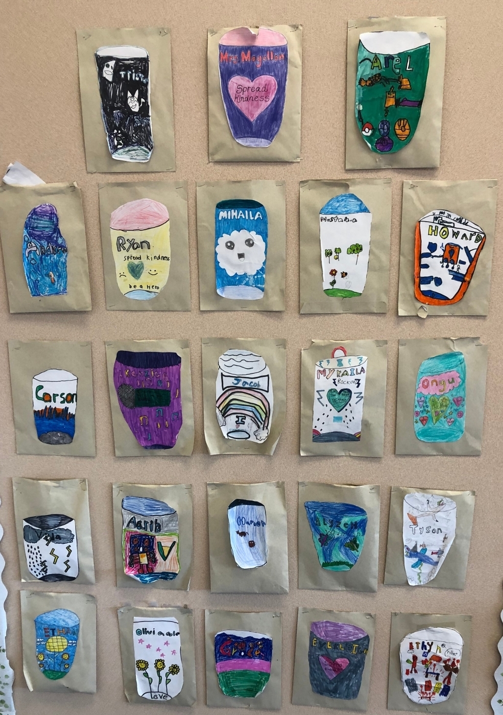 During weekly class meetings Bucket Slips are read to celebrate our commitment to the Class Charter and our accountability to one another as a classroom community. We watch our students acknowledge one another’s efforts to be kind, empathetic, inclusive, and respectful members of the classroom. Students demonstrate a sense of pride and ownership over their individual buckets that are displayed in the classroom.