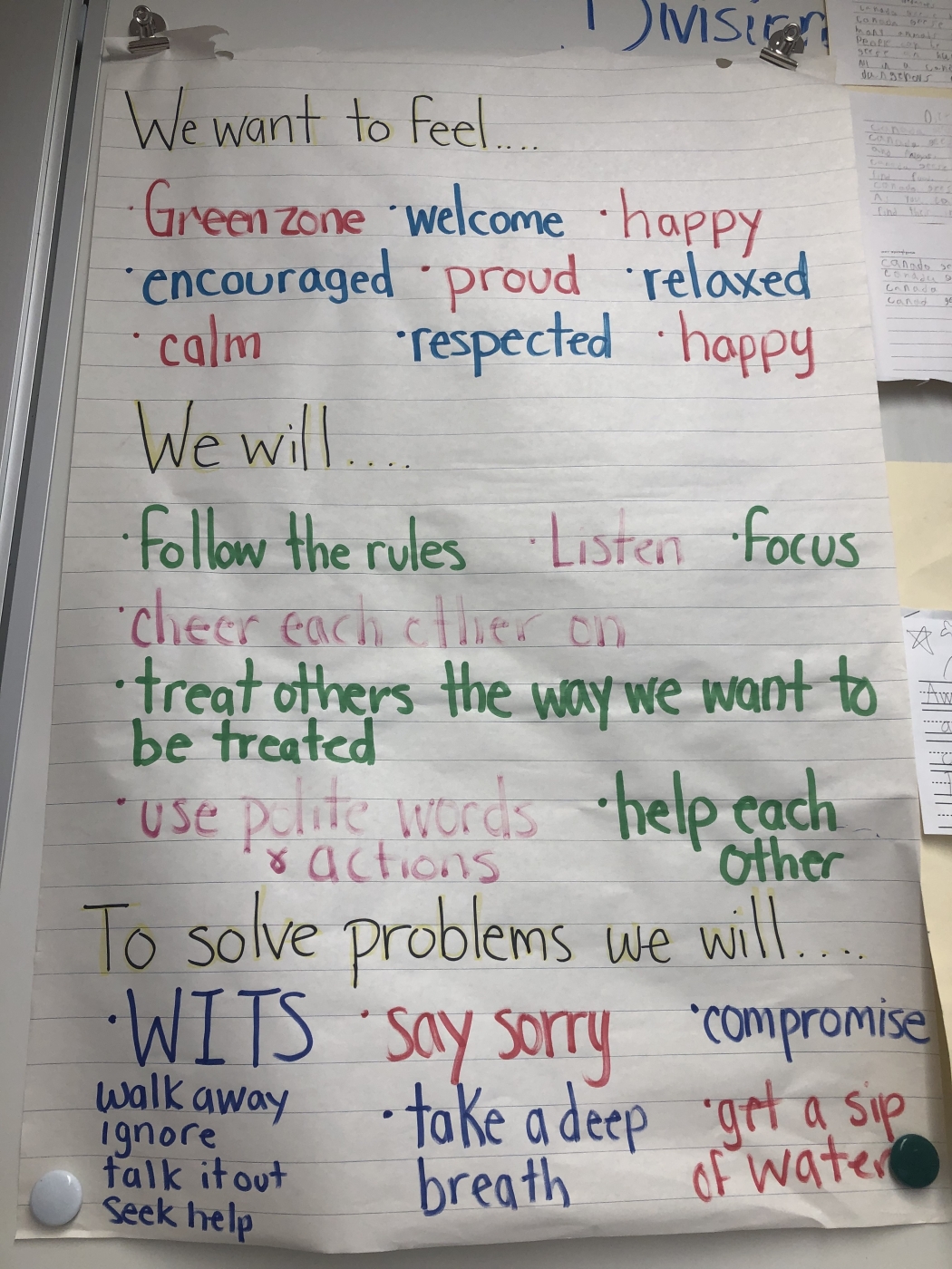 We are proud of our students and can see their learning and growth! We notice that our students look to the Class Charter to help them identify their feelings in relation to their peers and the classroom environment. When students are not feeling ready to learn, they often look to the Class Charter for strategies to help support their learning. Through practice and guided conversations, students have a toolbox of strategies that have proven to be effective for them. Students make their learning visible to us by discussing the strategies they use: the need to change their spot, use noise cancelling headphones, or take deep breaths to feel more focused.