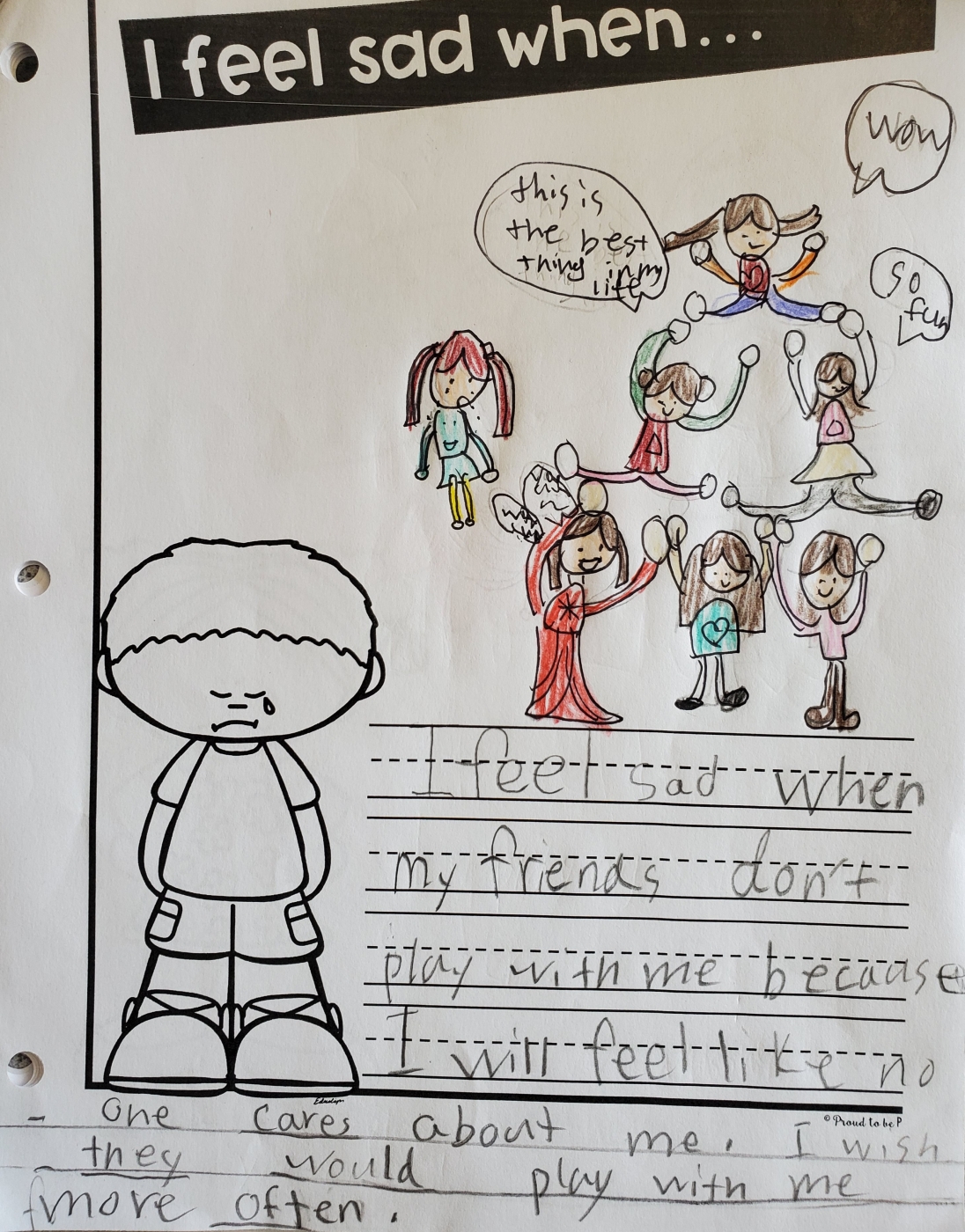Continue engaging in opportunities to reflect and express their feelings (i.e., Morning Meetings & journaling)