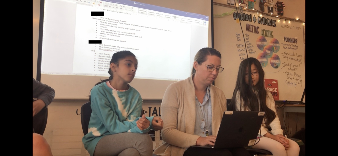 In the first example, Understanding and Celebrating Our Peers, the students have gathered to recognize the attributes of their peers. Together, they are identifying caring behaviours among classmates, and appreciating the influence of their peers on their classroom community as they collectively choose an ‘award’ that will capture the positive contributions of their classmate.