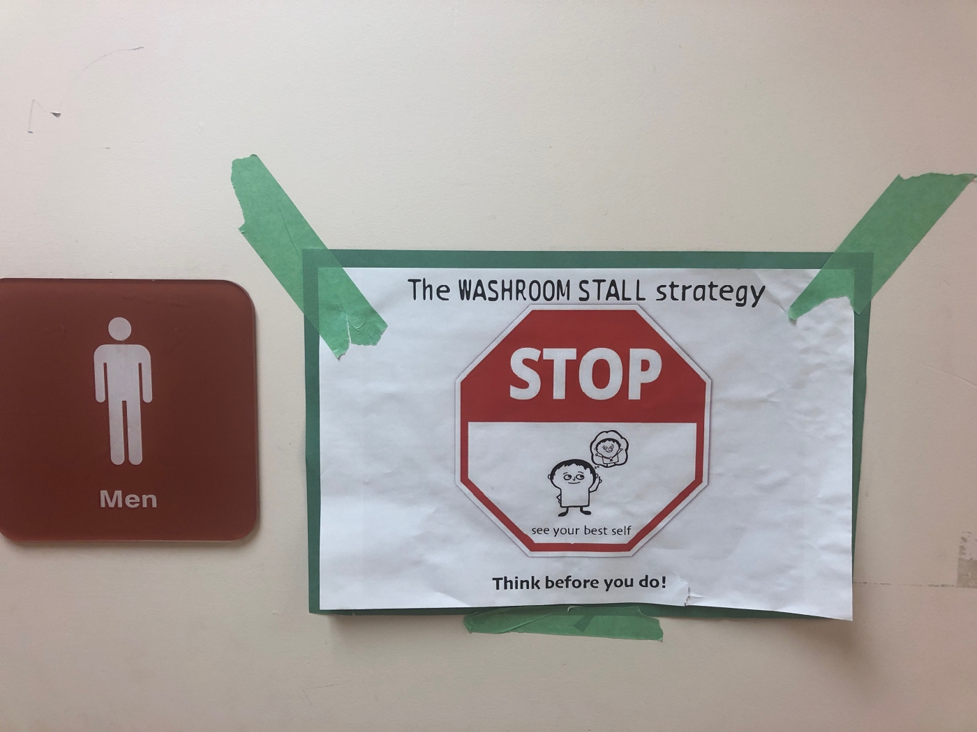 Our Grade 6 and 7 Leaders took their understanding of the Meta Moment this year to create a campaign promoting student respect of our shared spaces. They applied what they learned about ‘seeing their best self’ to encourage others to pause and chose respect with “The Washroom Stall”.