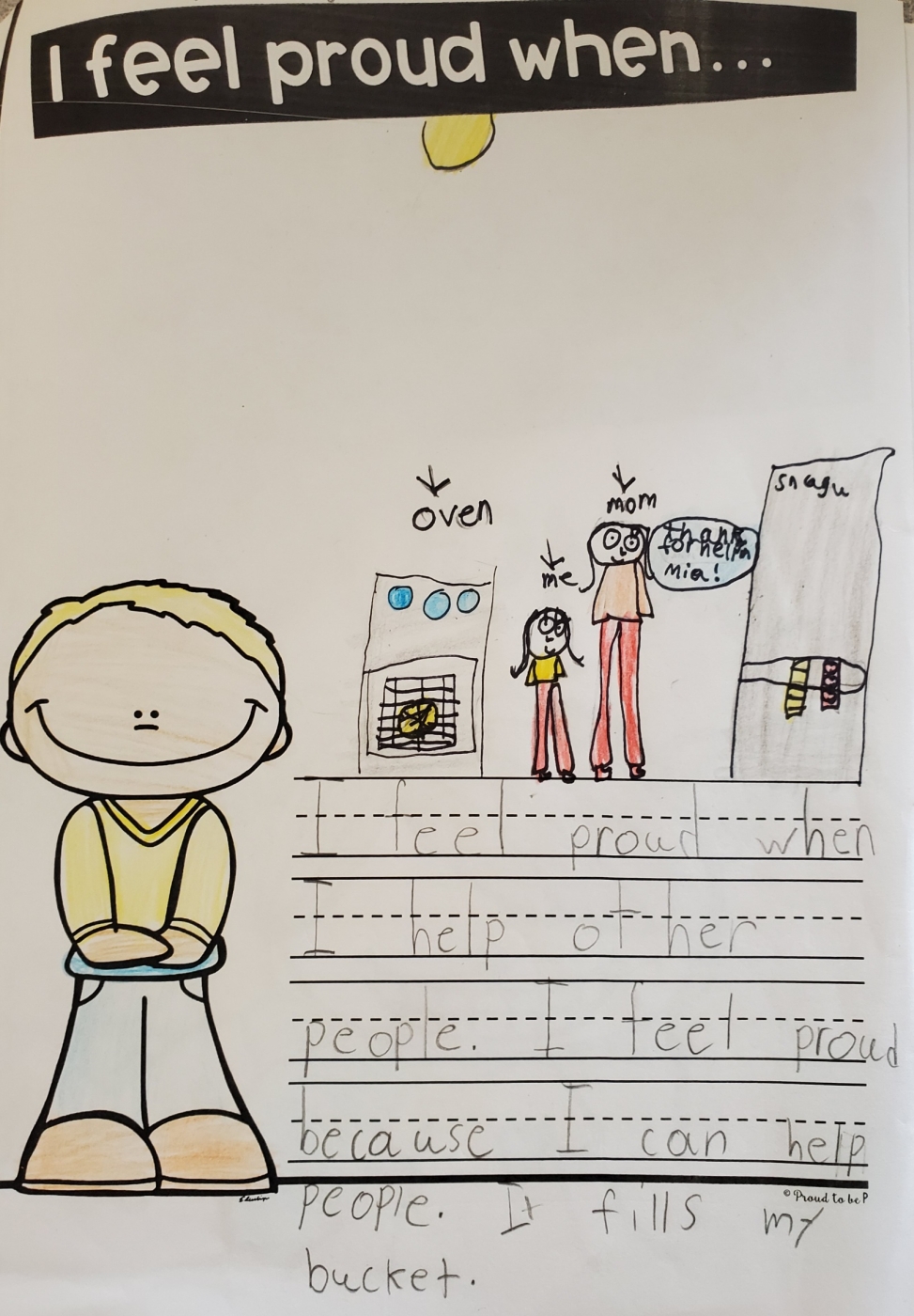 In our primary classes, students learn about identifying how they feel and how to manage their emotions. In our classrooms, it is important for students to first be able to identify feeling words and explore a variety of strategies for self-regulation. Student self-reflection is a lifelong skill that helps students with their overall well-being and sense of identity. The intention is with ongoing practice, students will have more positive peer relations and the ability to problem solve when conflicts arise.