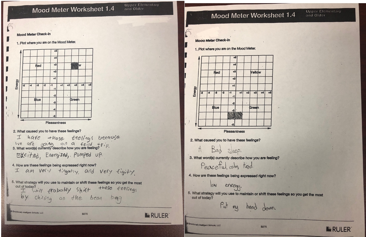Some classes use different tools to help students engage with the questions: How am I feeling? Another tool commonly found at Morgan is the “Mood Meter” from the RULER program.