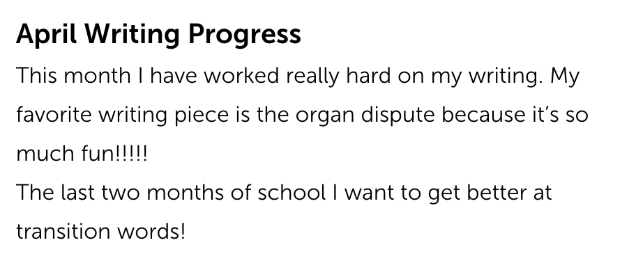 These writing samples clearly demonstrate that our students are reflective thinkers who are conscientious about their roles as contributing members of the Morgan school community.