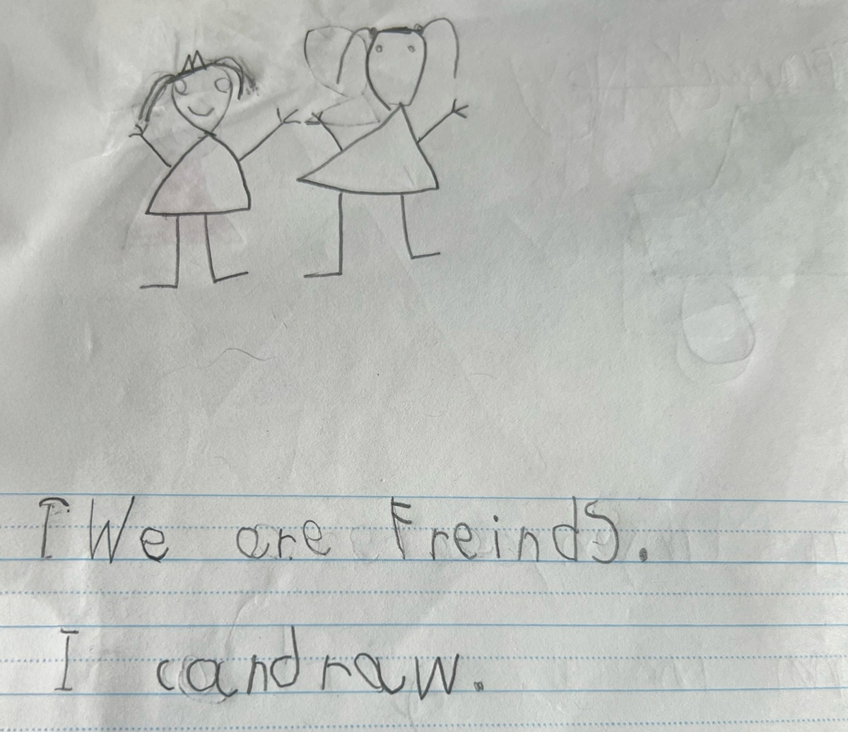 At Newton Elementary, our team approach has shown successful outcomes in reading and writing for our youngest learners. Primary students receive support from the classroom teacher, Early Literacy Teacher, and the Learner Support Team. The team works with students to develop phonemic awareness (first, last and middle sounds, number of syllables, blending first sound with the rest of the word, blending individual sounds and learning to identify rhyming words). Students practiced their phonics skills through writing as well.