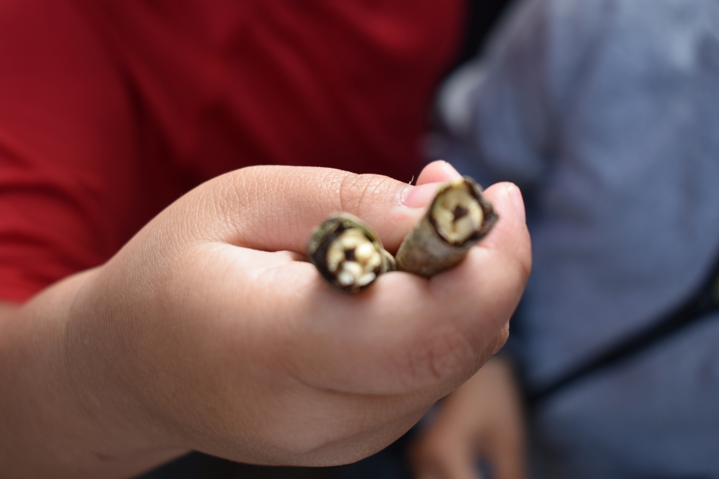 These are stars found by students by snapping dead twigs of a cottonwood tree. Students also learned the indigenous story/connection behind the stars and how they help brighten the sky. Our learners make connections to the natural world. "Look. This one has a big star. The stick has to be the right size. If it is too small it is all brown and if it is too big there is no star. The cottonwood drops lots of twigs."