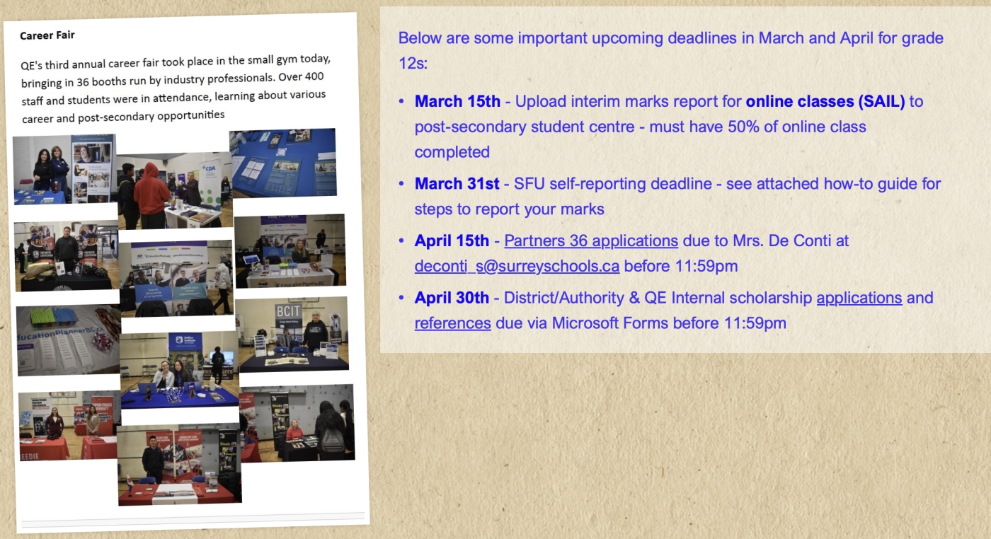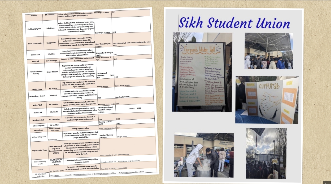 Queen Elizabeth Secondary is located on the shared, unceded, traditional territory of the Katzie, Semiahmoo and Kwantlen First Nations. At Queen Elizabeth Secondary School (QESS), our mission is to foster a safe, respectful, and inclusive learning environment where every student is empowered to grow intellectually, socially, and emotionally as they navigate their path to success in an ever-changing world. As part of a vibrant and diverse school community, QESS takes pride in a student body that represents a remarkable blend of cultural, socioeconomic, and academic backgrounds. This diversity enriches the learning environment, fostering a profound appreciation for multiculturalism, equity, and mutual respect. The dedicated staff works tirelessly to create an atmosphere where every student feels genuinely seen, respected, and supported.