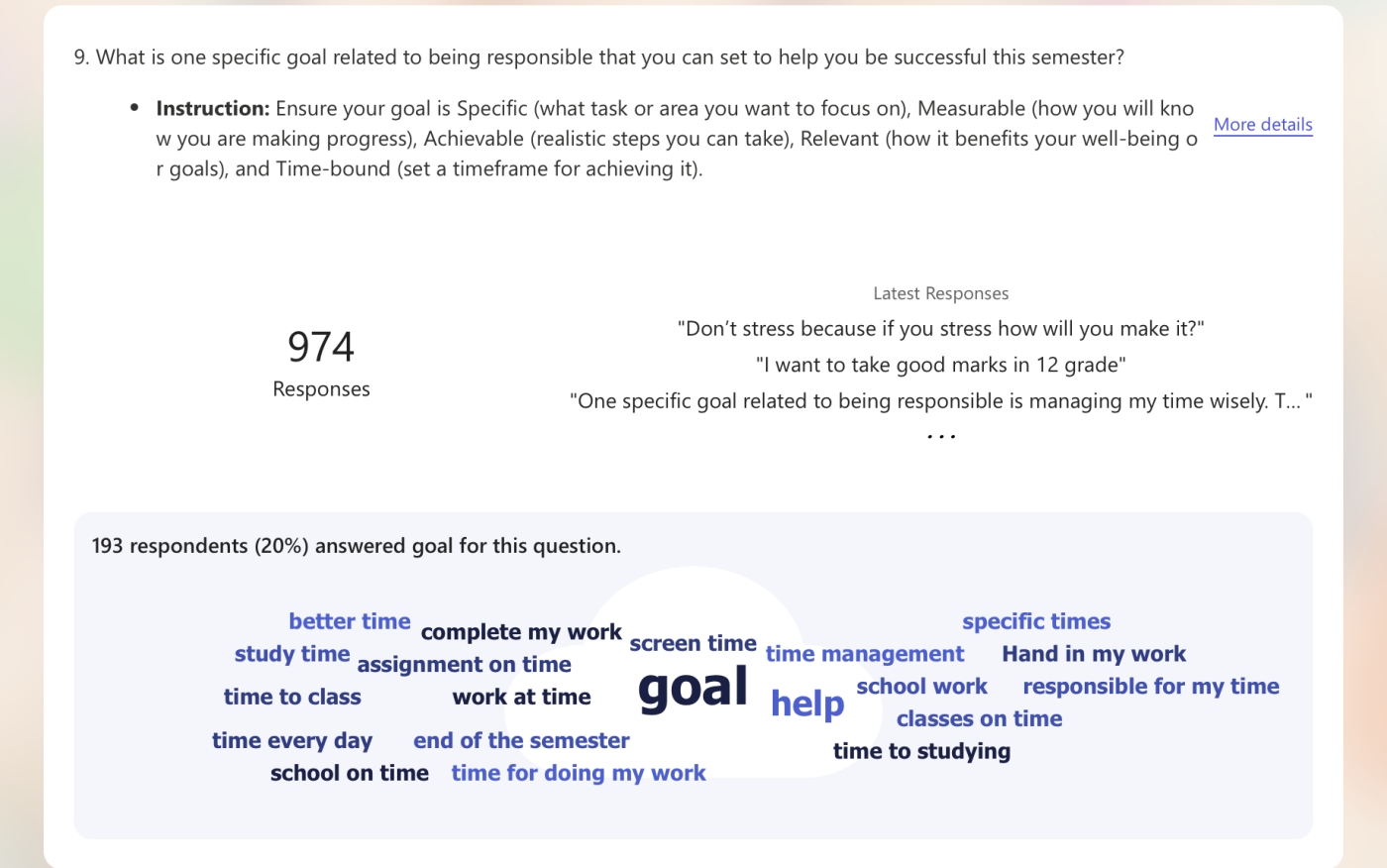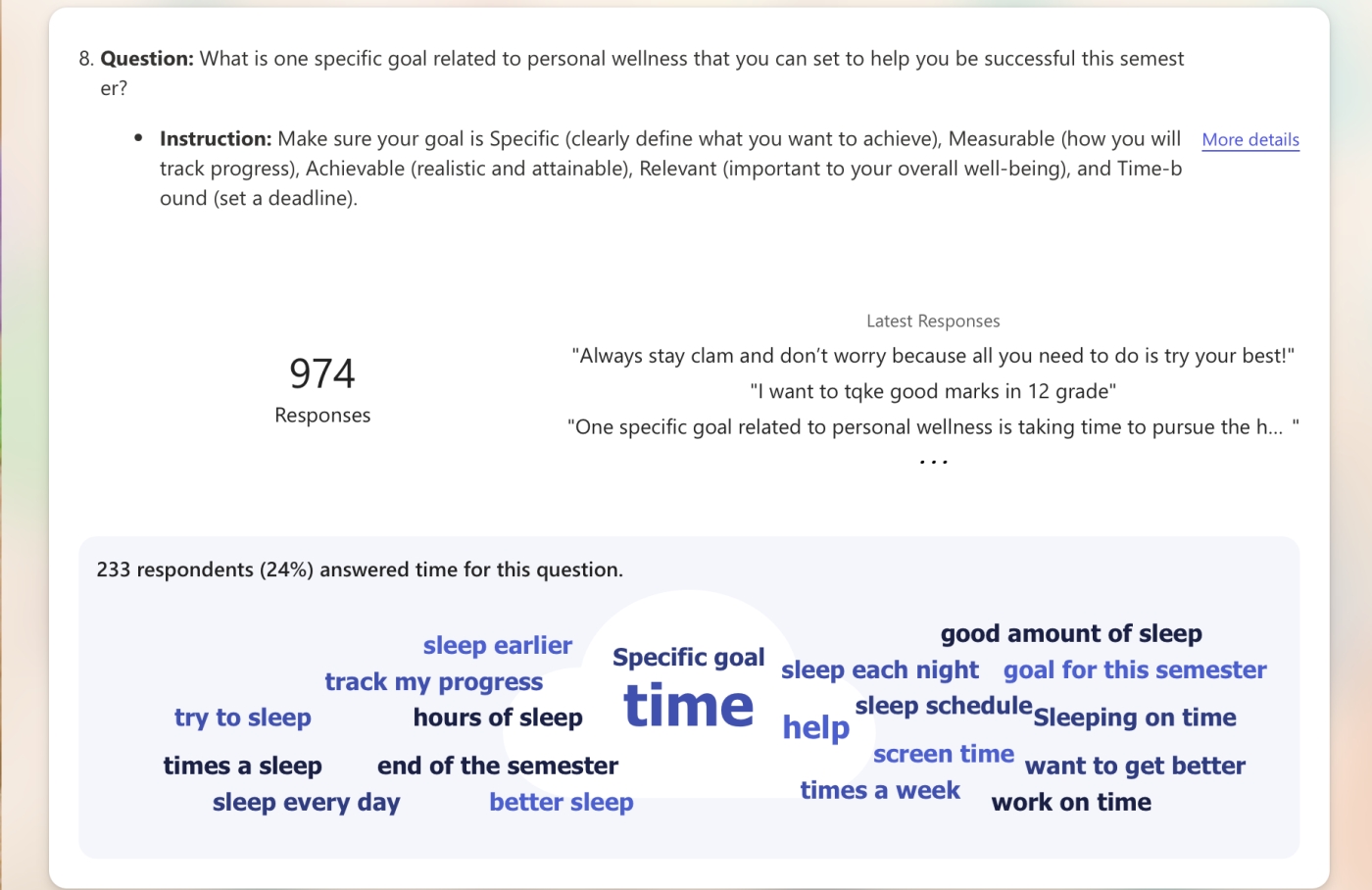 To gain further insight into our entire student community grades 8 through 12, we began semester two with a commitment to success by setting achievable goals and fostering an inclusive school environment where students feel valued and engaged. To gain a better understanding our students' needs and experiences the following questions were asked through the Core Competency Self Assessment Survey:
