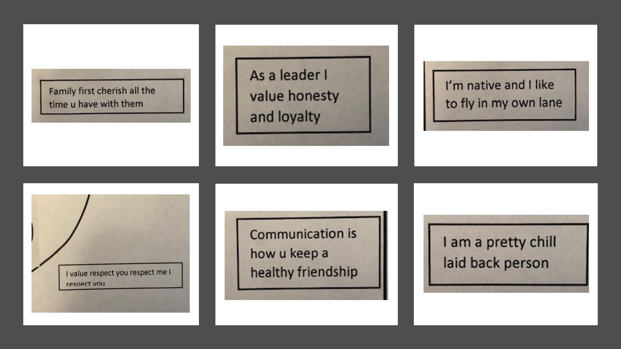 Our students are developing their self awareness and self management skills and capacities by exploring and describing factors that shape personal identities, including social and cultural factors. They have demonstrated their ability to: