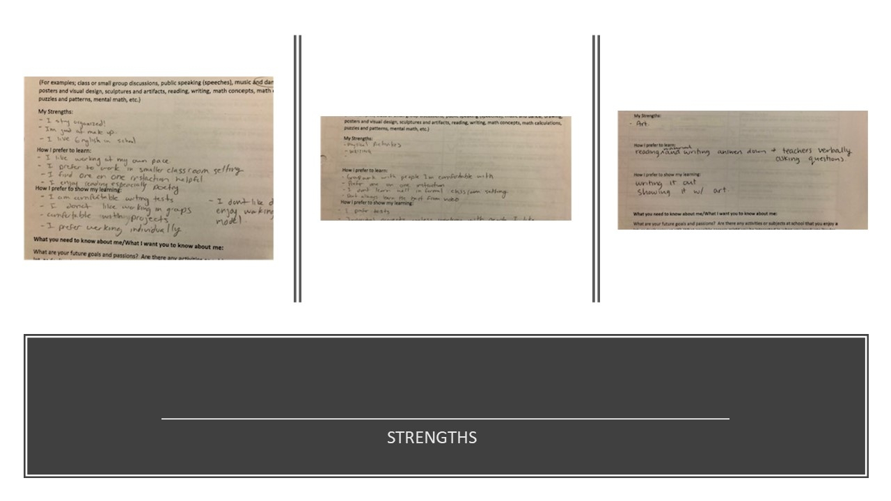 Our learners can recognize their strengths and can use strategies to focus and accomplish their goals.