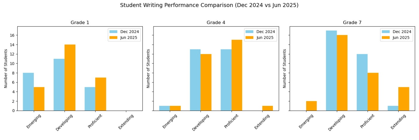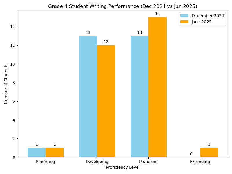Data was collected in December of 2024, guiding targeted instruction in writing to enhance writing skills for the remainder of the school year. We again then looked at final data in June 2025 to make comparisons.